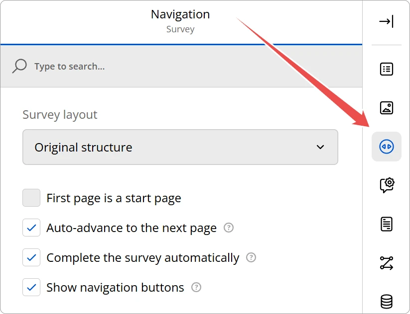To change the general structure of your form, navigate to the Navigation section in the Property Grid and locate the Survey layout dropdown.