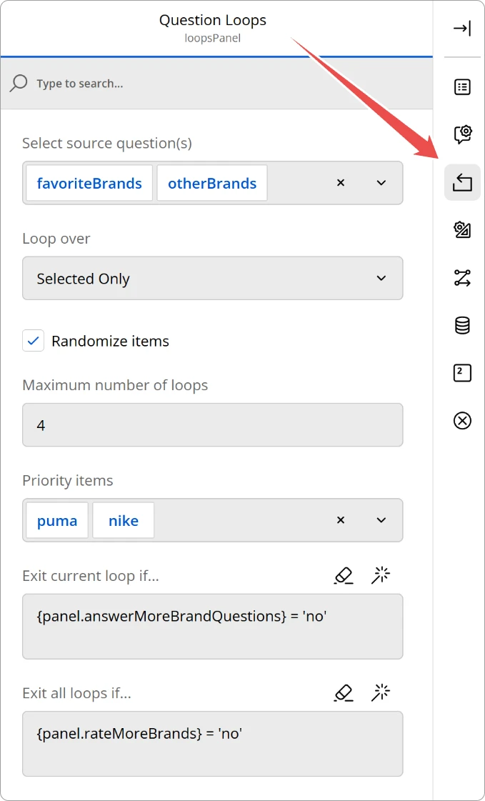 "exitLoopCondition": "{panel.moreBrandQuestions} = 'no'",