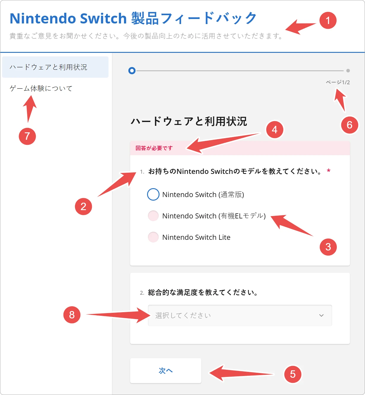 - Navigation buttons (5) (e.g., "Next", "Previous", and "Complete")