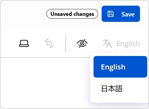 If a form contains more than one language a dropdown selector automatically appears in the upper right corner of the screen:
